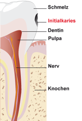Eine beginnende Karies, die erst einen kleinen Bereich des Zahnschmelzes befallen hat, wird Initialkaries genannt.